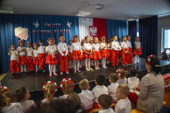 W czasie swojego występu dzieci przedstawiły krótką lekcję historii, recytowały wiersze, a także śpiewały patriotyczne pieśni oraz piosenki. Nie zabrakło także pięknego występu tanecznego w ich wykonaniu. Każde z elegancko ubranych dziewczynek oraz chłopców z dumą prezentowały przypięte do swej piersi biało-czerwone wstążki.