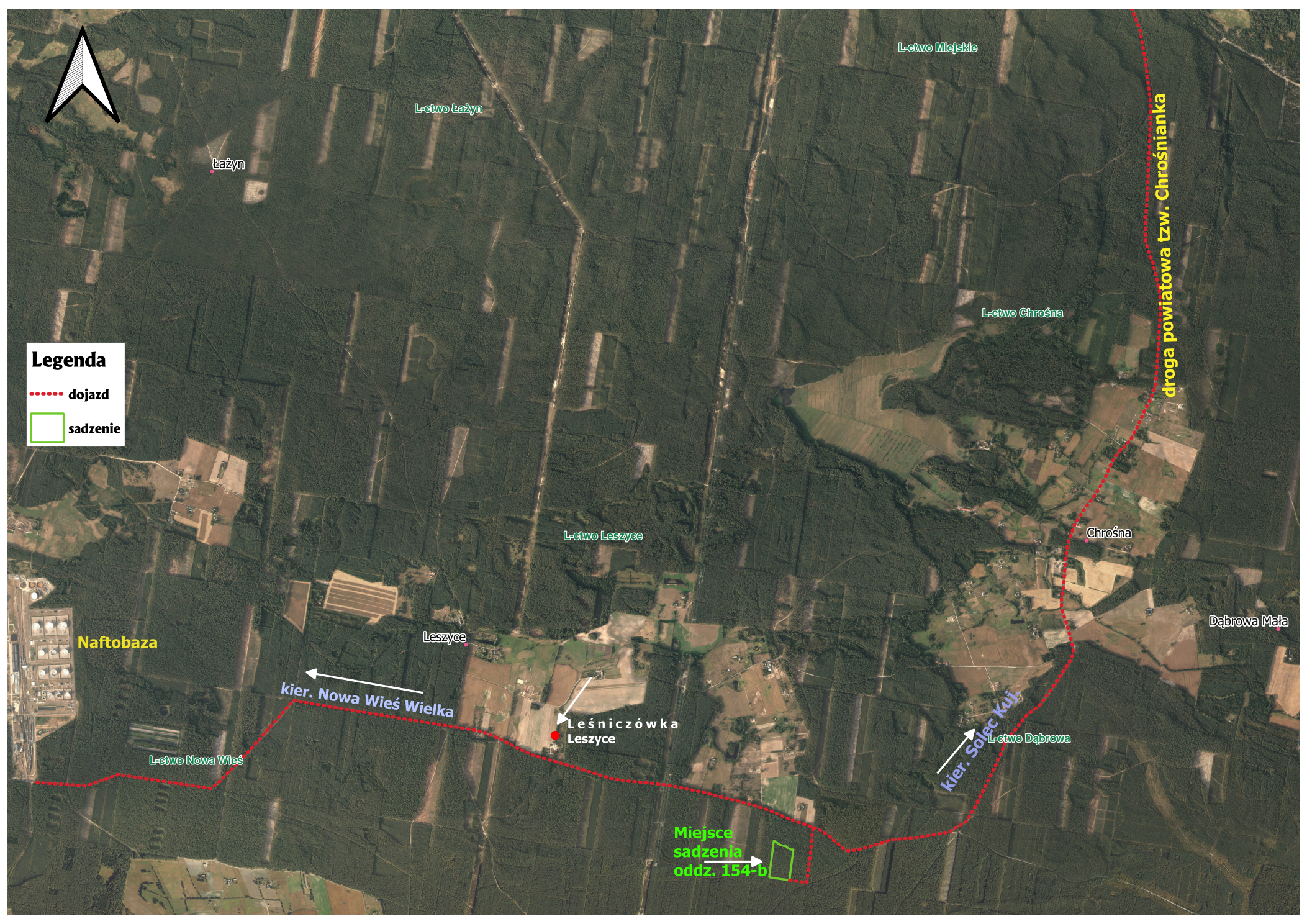 Mapa dojazdu na pow. sadzenia z Nowej Wsi Wlk. i Solca Kujawskiego