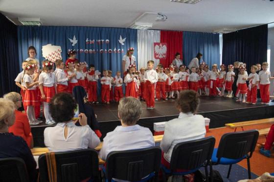 W czasie swojego występu dzieci przedstawiły krótką lekcję historii, recytowały wiersze, a także śpiewały patriotyczne pieśni oraz piosenki. Nie zabrakło także pięknego występu tanecznego w ich wykonaniu. Każde z elegancko ubranych dziewczynek oraz chłopców z dumą prezentowały przypięte do swej piersi biało-czerwone wstążki.